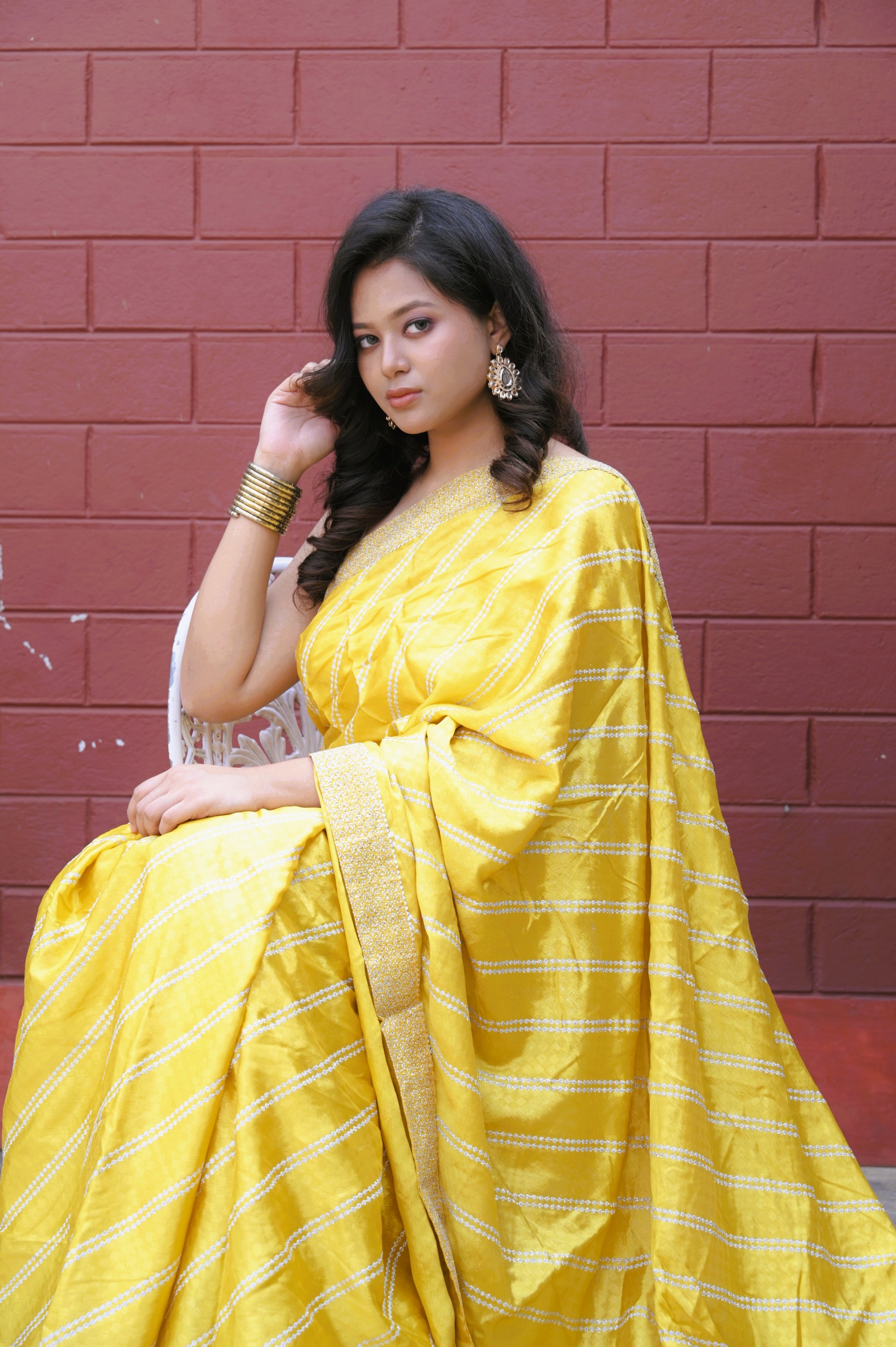 The subtle glittery pattern enhances the richness of the saree without overpowering its understated elegance, making it ideal for women who appreciate refined minimalism.